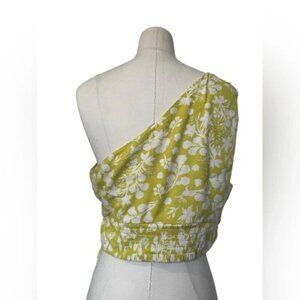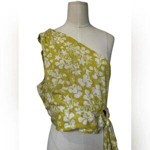 Elevate your style with this chic floral one-shoulder top. The vibrant yellow hue adds a pop of color to any outfit. Perfect for casual outings or a night out. Excellent used Condition Size : Large Firs true to size Aprox measurements: Armpit x armpit:18” Lenght:16” Bx:15