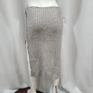 Free People One Size Gray Ribbed Knit Midi Skirt W/ Side Slit Soft Cozy Stretch