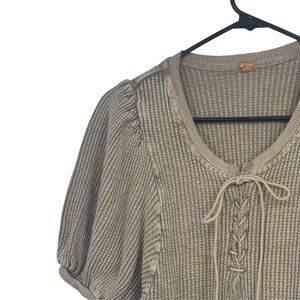 Free People One Size XXS Tan Waffle Weave Hayden Thermal Dolman Sleeve Top