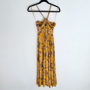Free People One Step Ahead Yellow Floral Maxi Dress Sz XS