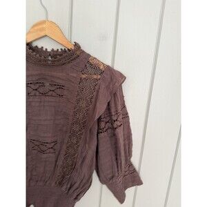 Free People One Sydney Blouse Small Brown Lace Crochet Cottagecore Cotton
