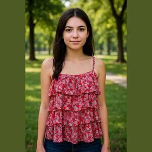 Free People One Talia Tunic Floral Printed Tiered Sleeveless Top Size XS