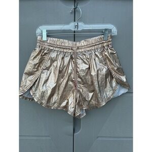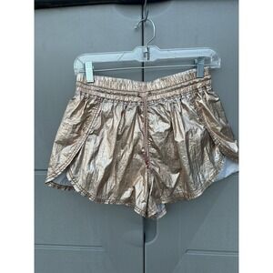 Free People One X Fp Movement Wind Jammer Shorts Rose Gold Metallic Drawstring M