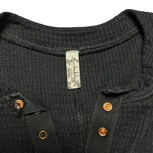 Free People One of the Girls Henley Waffle Knit Top Black Size Small