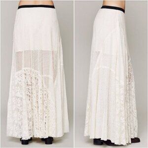 Free People One lace patchwork maxi skirt with mini skirt underlay