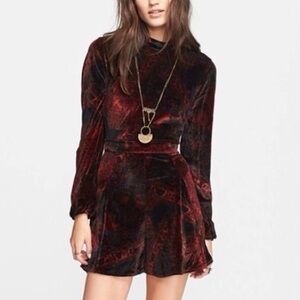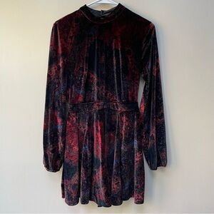 Free People Onyx Combo Printed Velvet Cut-out Back Romper Black Red Size 4