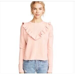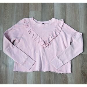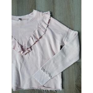 Free People Ooh La Ruffle Peach Pink French Terry Pullover Sz Medium