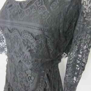Free People Open Back Black Allover Lace Midi Dress Open Back Size S