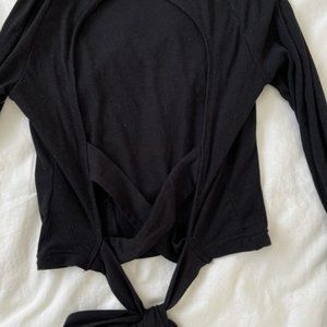 Open back, top button detail, bottom bow tie detail. Extremely soft. Great for layering.'