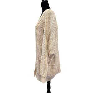Free People Open Front Cable Knit Cardigan Sweater Small Beige Cotton