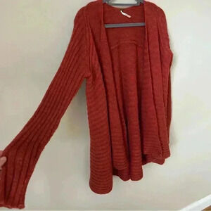 Free People Open Front Wool Blend Red Cardigan Terracotta Knit Women Size Small