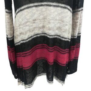 Free People Open Knit Tunic Hi Low Sweater Size S Striped Boho Bohemian Beige