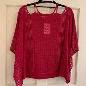 Free People Open Shoulder Top in Raspberry