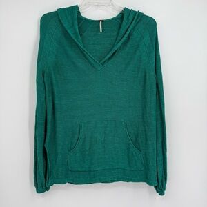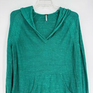 Free People Optimistic Linen Blend Green Hoodie Sweater Size Small Long Sleeves