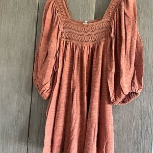Free People Orange Bohemian Jumpsuit with Smocked Square Neckline