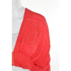 FREE PEOPLE ORANGE CORAL COTTON SILVER SEQUINED TRIM V-NECK CROPPED SWEATER SHRUG SZ S