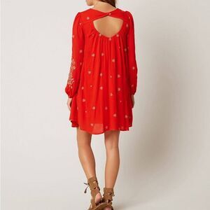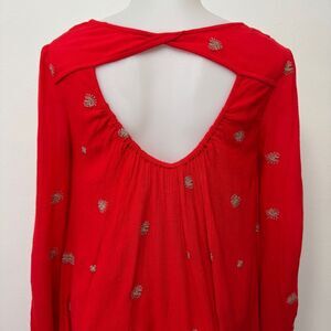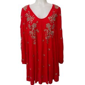Free People Orange Coral Embroidered Boho Swing Floral Dress Pockets Extra Small