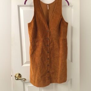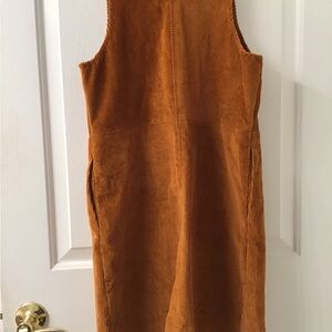 Sleeveless corduroy dress. Button-down front. Rich orange hue. Runs very large, best for a s/m depending how oversized you’d like it.