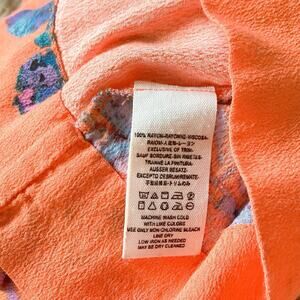 This Free People jumpsuit (size small) is pure “I am the vibe” energy—bold orange-and-purple florals, dramatic cropped wide legs, and peekaboo side cutouts that flash just enough skin. Adjustable spaghetti straps and a buttoned bodice keep it comfy, chaotic-chic, and ready for anything.