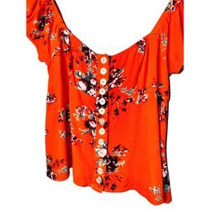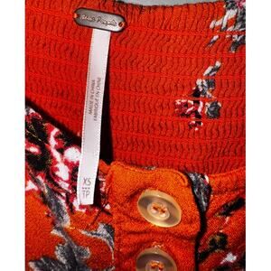 Free People Orange Floral Button Down Top XL Off Shoulder Smocked Back Boho