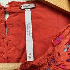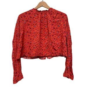 Free People Orange Floral Long Sleeve Cropped Top Medium