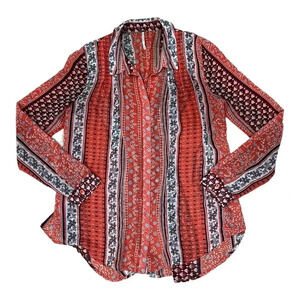 Free People Orange Sheer Moonlight Mile Boho Blouse S