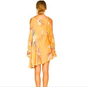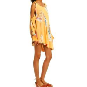Chic mini dress with floral print. Features cold shoulder design. Perfect for casual outings.