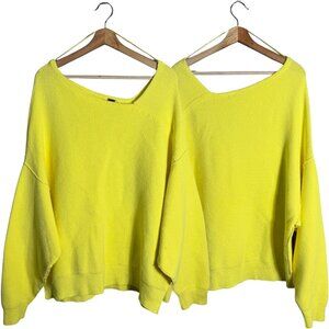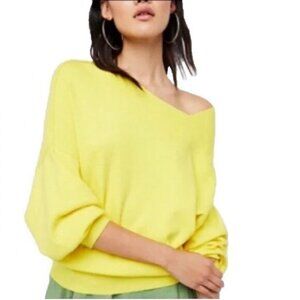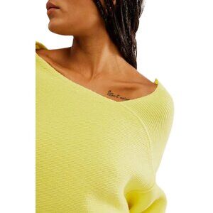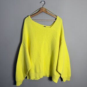 Free People Ottoman Check Knit Sweater Pullover Womens XL Lemon Yellow Boho NWT