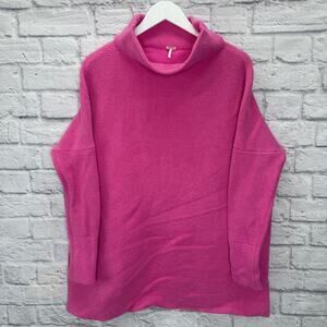Free People Ottoman Slouch Tunic Size M Bright Pink Long Sleeve Oversized Ribbed