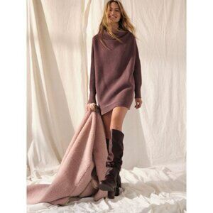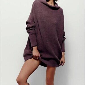 Free People Ottoman Slouchy Tunic Sweater Dress Black Purple Raisin Size Large
