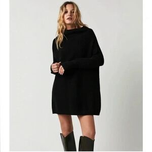 Free People Ottoman Sweater Tunic Black Ribbed Turtleneck Size Extra Small