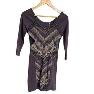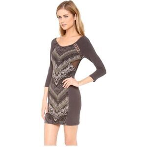Free People Out of Africa Bodycon Mini Dress Mesh Cutout Size XS