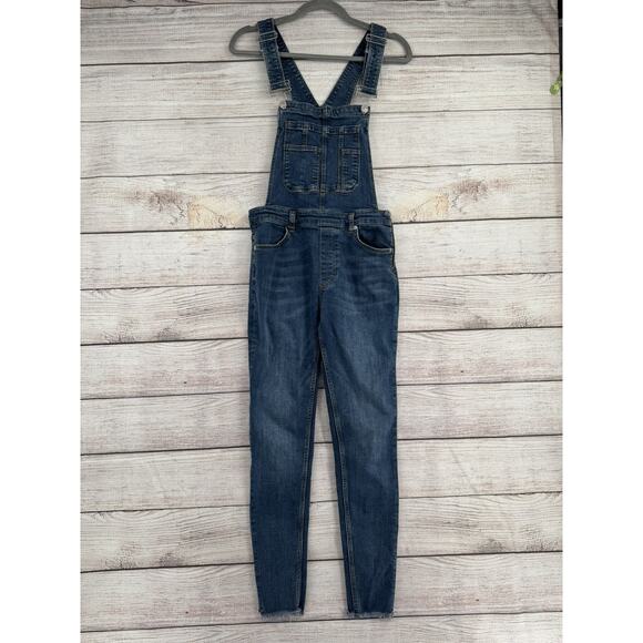 Free People Overalls Womens 28R Blue Denim Skinny Stretch Adjustable Bib Jeans