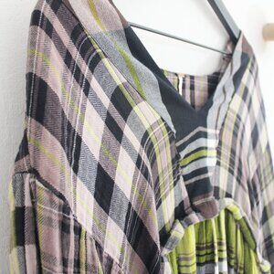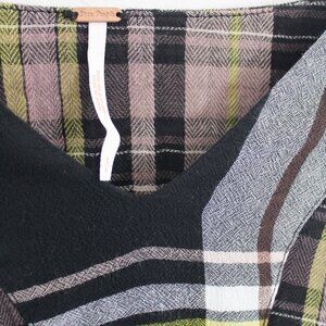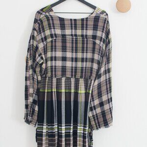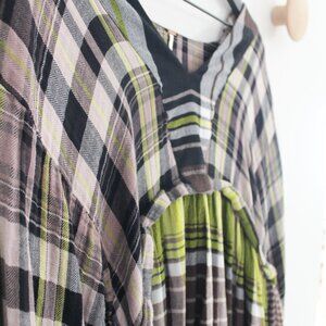 Free People Oversize v-neck plaid flowy long Sleeve Dress - Small Petite S/P