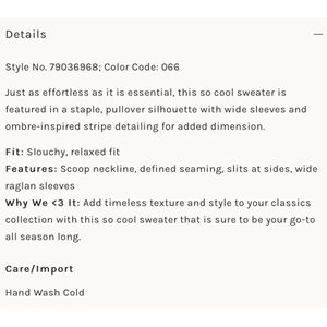 Soft, cozy and a perfect closet staple for colder months. Boxy, oversized fit with wide sleeves.