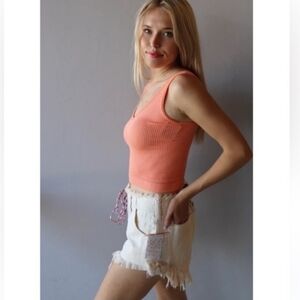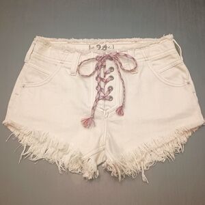 Free People Oversized Becket Lace-Up Cutoff Denim Shorts in Salty (Off White). Excellent Like New Condition!