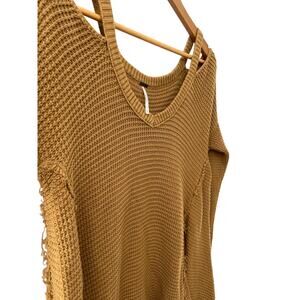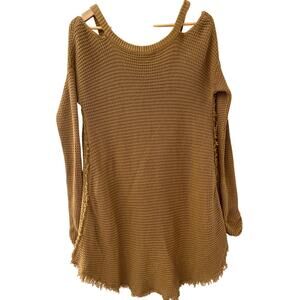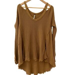 Free People Oversized Boho Moonshine Sweater Cold Shoulder in Carmel Size Small