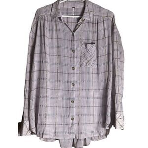 Free People Oversized Break My Stride Button Front Pink & Metallic Top Size S 📦