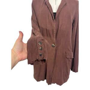 Free People Oversized Brown Linen Blazer – Goth Grunge Layering Jacket
