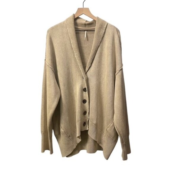 Free People Oversized Button Front Chamomile Cardigan Medium Neutral