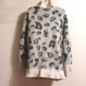 It's a dark and light gray leopard print with a slight bluish hue. Definitely feels like there's wool in it.