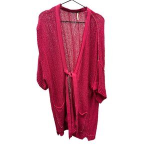 Elevate your wardrobe with this Free People oversized cardigan. Its vibrant fuchsia hue and loose, airy knit provide both comfort and style. The tie closure and front patch pockets offer practicality, while the blend of cotton and nylon ensures durability. Pair it effortlessly with jeans for a chic, relaxed look.