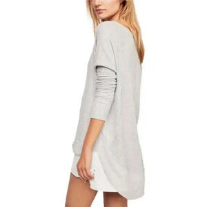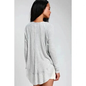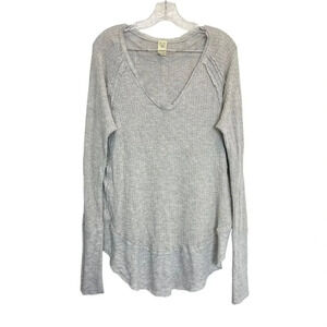 Free People Oversized Catalina Waffle Thermal Knit Top XS Gray V-Neck Hi Low Hem