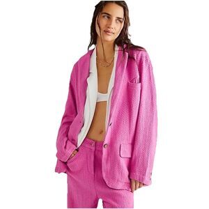 Free People Oversized Cotton Knit Textured Blazer Jacket Size M Pink Boho Career