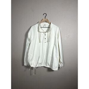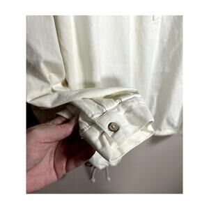 Features: Funnel neckline, button-up front closures, slouchy sleeves, banded waistband
