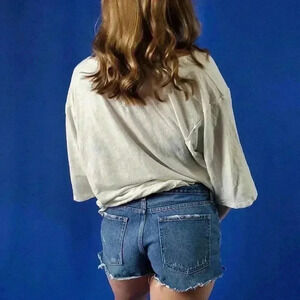 Free People Oversized Cream V-Neck 3/4 Sleeve Tee - L
