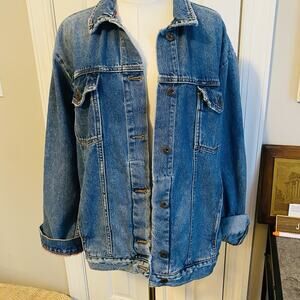 Free People Oversized Jean Jacket M Denim Distressed Retro Trucker Fall Boho