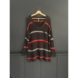 Free People Oversized Knit Striped Sweater Brown Size Small