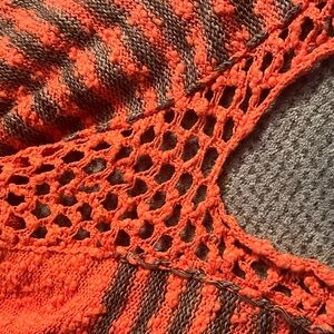 Free People Oversized Open Knit Sweater Stripe Weave Crochet Boho Scallop parka