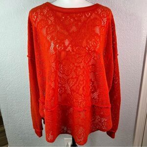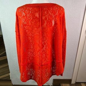 Free People Oversized Orange Long Sleeve Top Semi-Sheer Lacy Size XS Bohemian